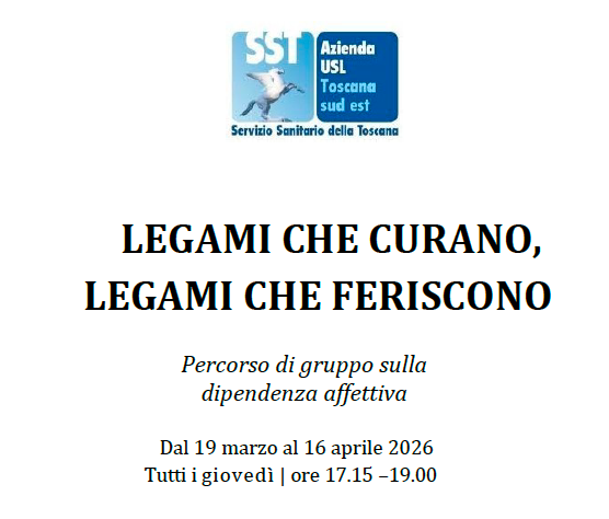 Nel quadro delle iniziative legate all’8 marzo e ai temi della medicina di genere, il SerD di Arezzo promuove un ciclo di incontri dedicato alla dipendenza affettiva (love addiction), alla codipendenza e alle dimensioni psicologiche e sociali delle relazioni che generano sofferenza.