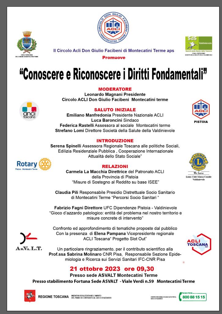 Il circolo ACLI Don Giulio Facibeni di Montecatini Terme aps ha organizzato un evento di sensibilizzazione intitolato  "DGA: “Conoscere e Riconoscere i Diritti Fondamentali”.