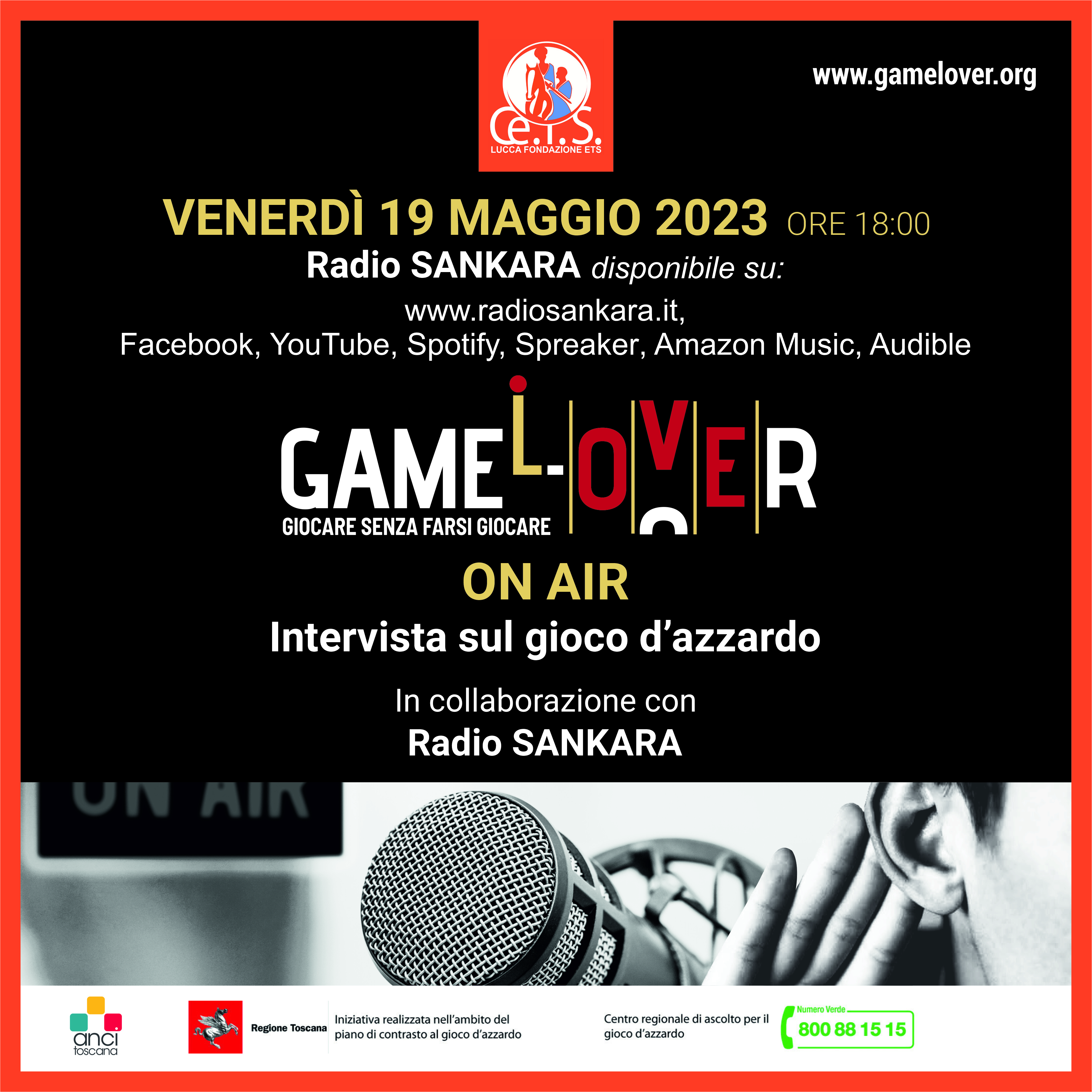Il progetto Game-L-Over va in onda su Radio SANKARA con la trasmissione di un'intervista sui temi del gioco d'azzardo. Siete invitati all'ascolto su www.radiosankara.it.