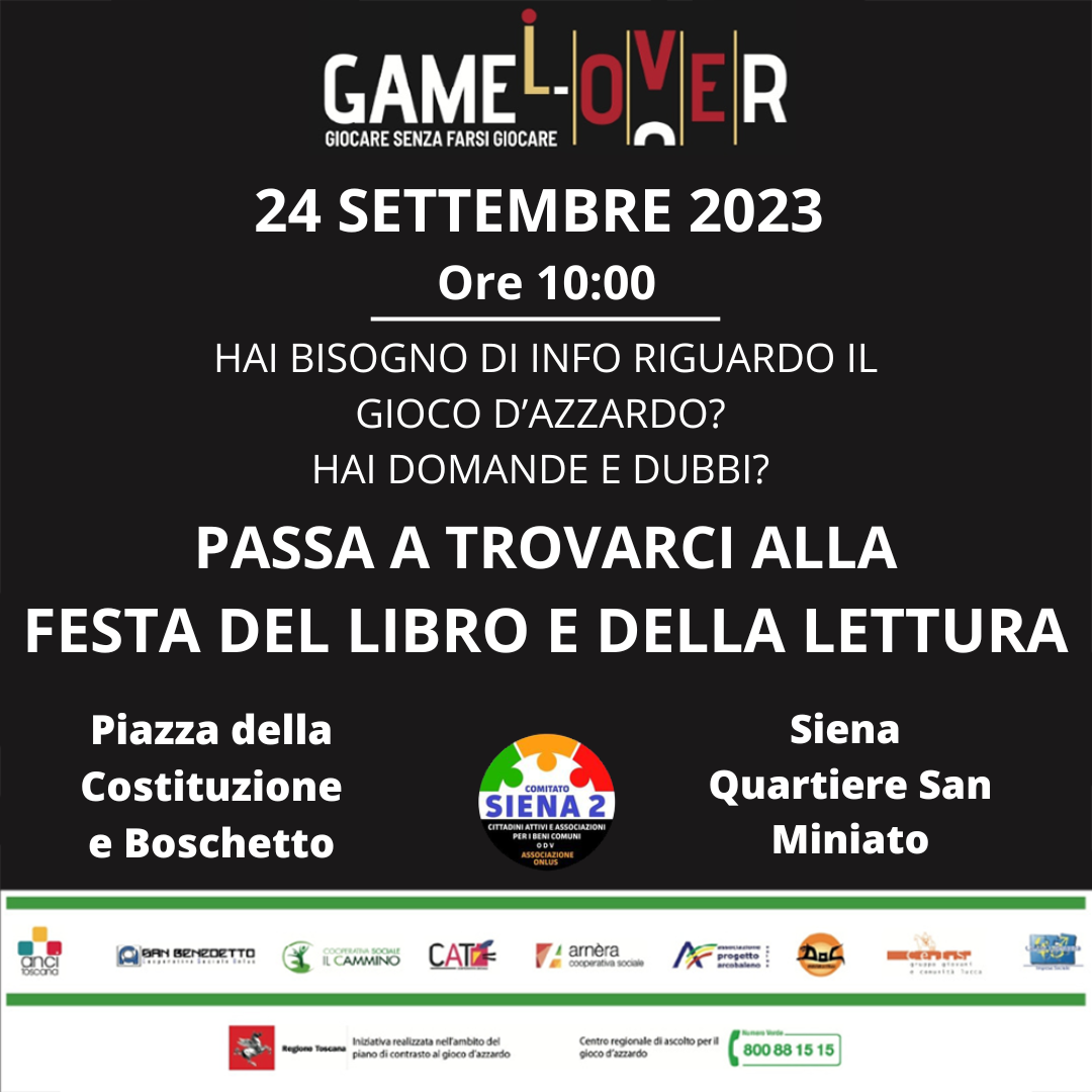 Durante l'evento è prevista la presenza degli operatori Game-L-Over con una postazione informativa per la distribuzione di materiali e per la promozione dello sportello di ascolto di Siena.