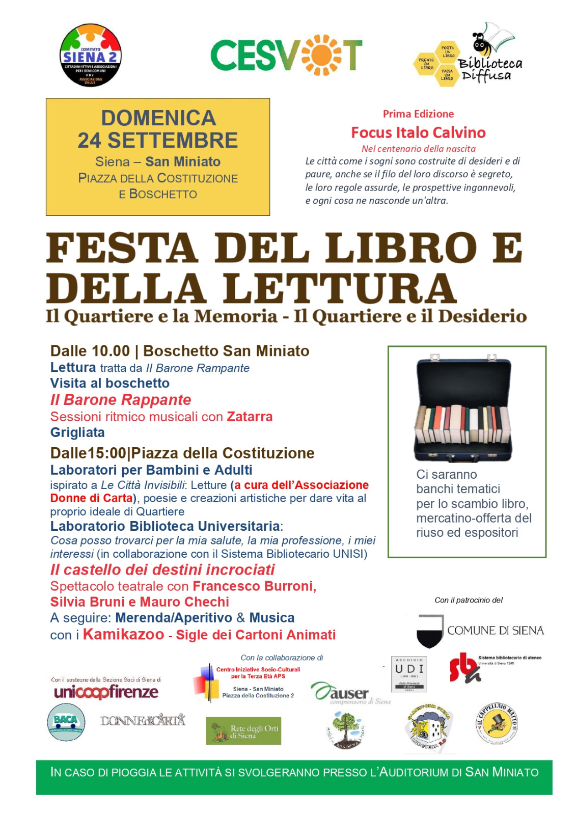 Il 24 settembre all'interno del Quartiere San Miniato di Siena si svolgerà la "Festa del Libro e della Lettura" il cui obiettivo è quello di dare visibilità alla cittadinanza attiva e al progetto della biblioteca diffusa. La manifestazione prevede, nell'arco della giornata, una sessione di lettura, alcuni laboratori tematici e una rappresentazione teatrale.