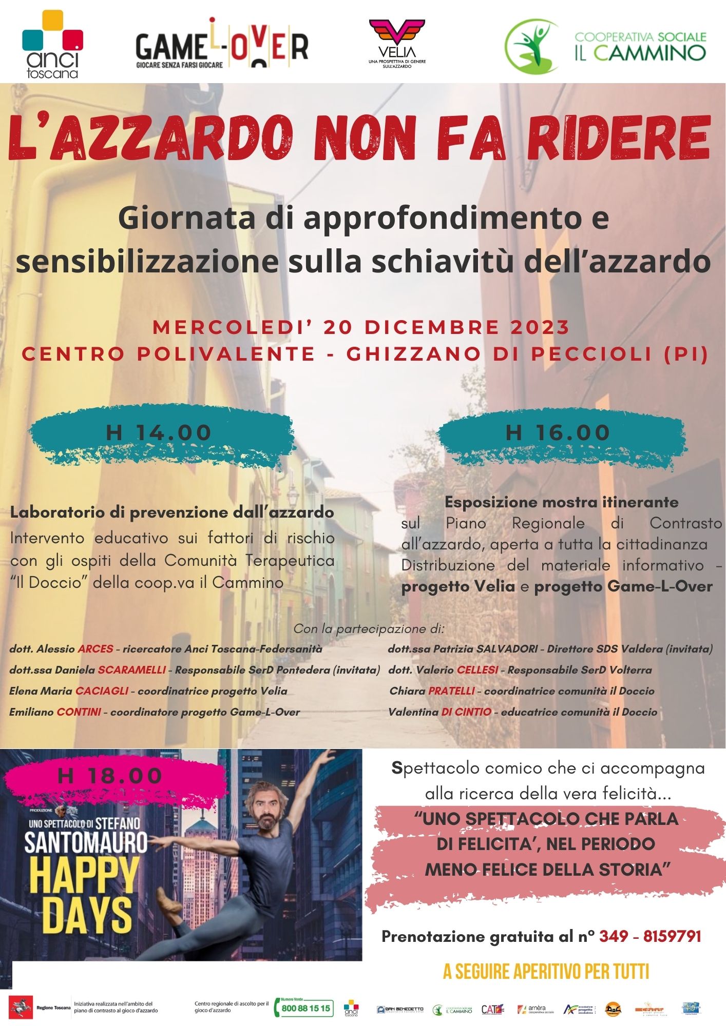Il prossimo microevento di sensibilizzazione sui rischi dell'azzardo si svolgerà il giorno 20 Dicembre a Ghizzano di Peccioli (Pisa), all'interno delle attività del progetto Game-L-Over, in collaborazione con il progetto Velia.