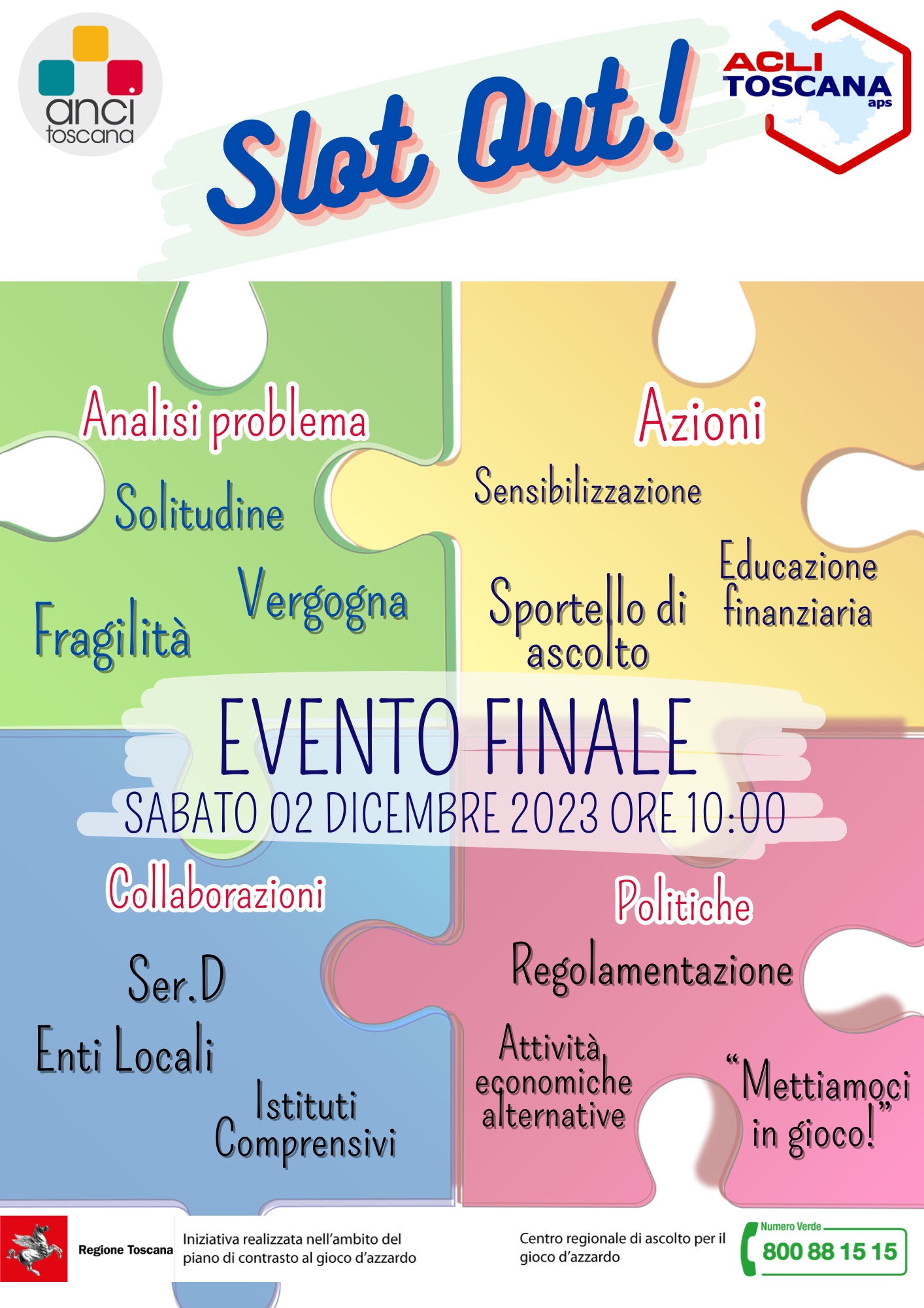 L'evento finale del Progetto Slot Out organizzato da Acli Toscana sarà realizzato il prossimo 02 dicembre, durante il Consiglio Regionale allargato.