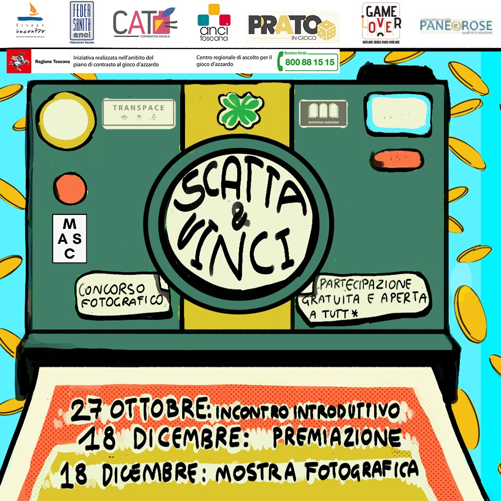 'Scatta e Vinci' è l'evento di Game-L-Over organizzato in collaborazione con il progetto Prato in Gioco. Avrà luogo il 27 ottobre presso gli spazi Officina Giovani di Prato (Piazza dei Macelli n4) l'incontro introduttivo di questo progetto fotografico realizzato in collaborazione con il Collettivo MASC di Prato.
