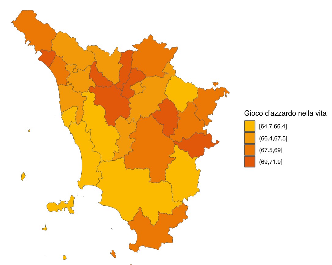 Prevalenza di gioco d'azzardo nella vita in Toscana per zona-distretto - Anno 2024