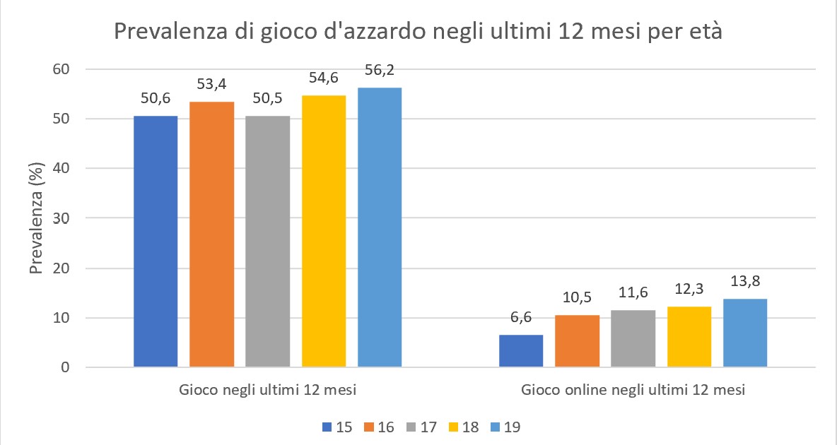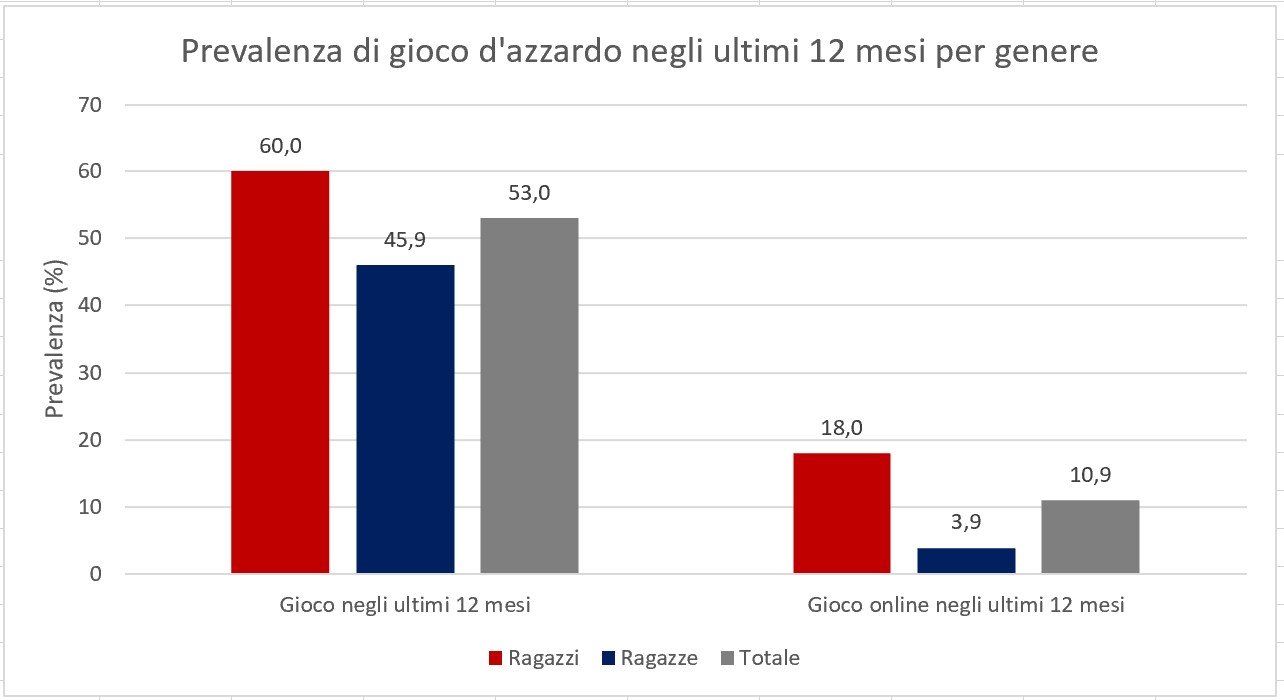 | Gioco d'azzardo 12 mesi | 57,5 | 64,0 | 45,4 | 46,7 | 51,5 | 55,4 |