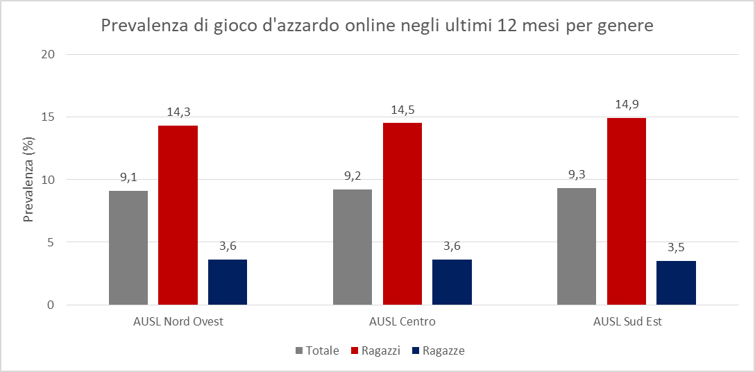 | Gioco ONLINE nell'ultimo anno | 9,2 | 14,5 | 3,6 | 7,2 | 12,2 | |