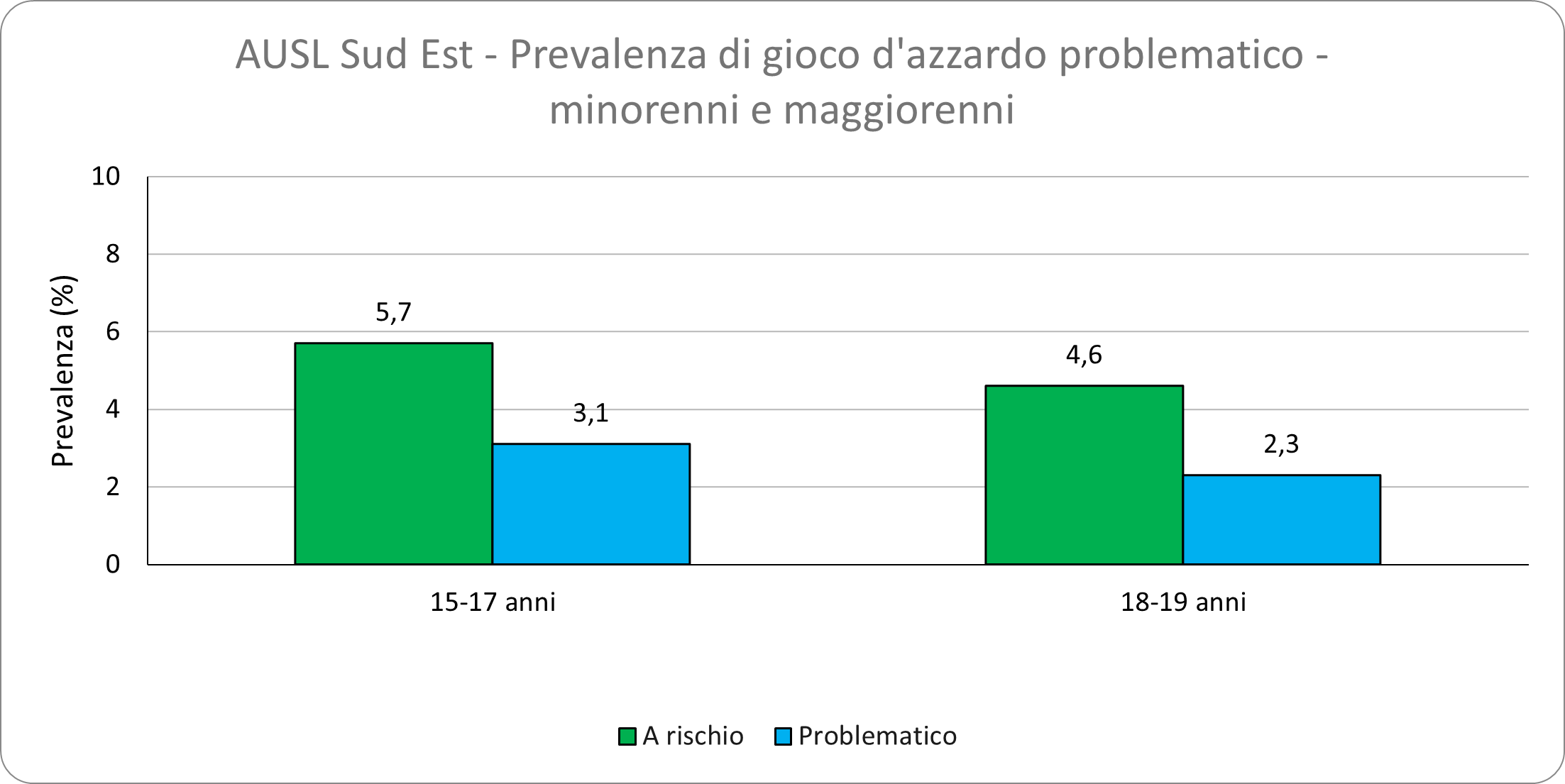| AUSL Sud Est | Gioco nell'ultimo anno | 42,7 | 52,5 | 32,6 | 39,1 | 47,9 |